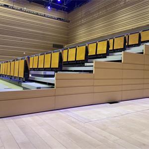 活動(dòng)看臺(tái)是一種可靈活調(diào)節(jié)空間布局的座椅系統(tǒng),廣泛應(yīng)用于體育館、劇場、展覽館等場所,使場館在平面大廳與看臺(tái)之間轉(zhuǎn)換。